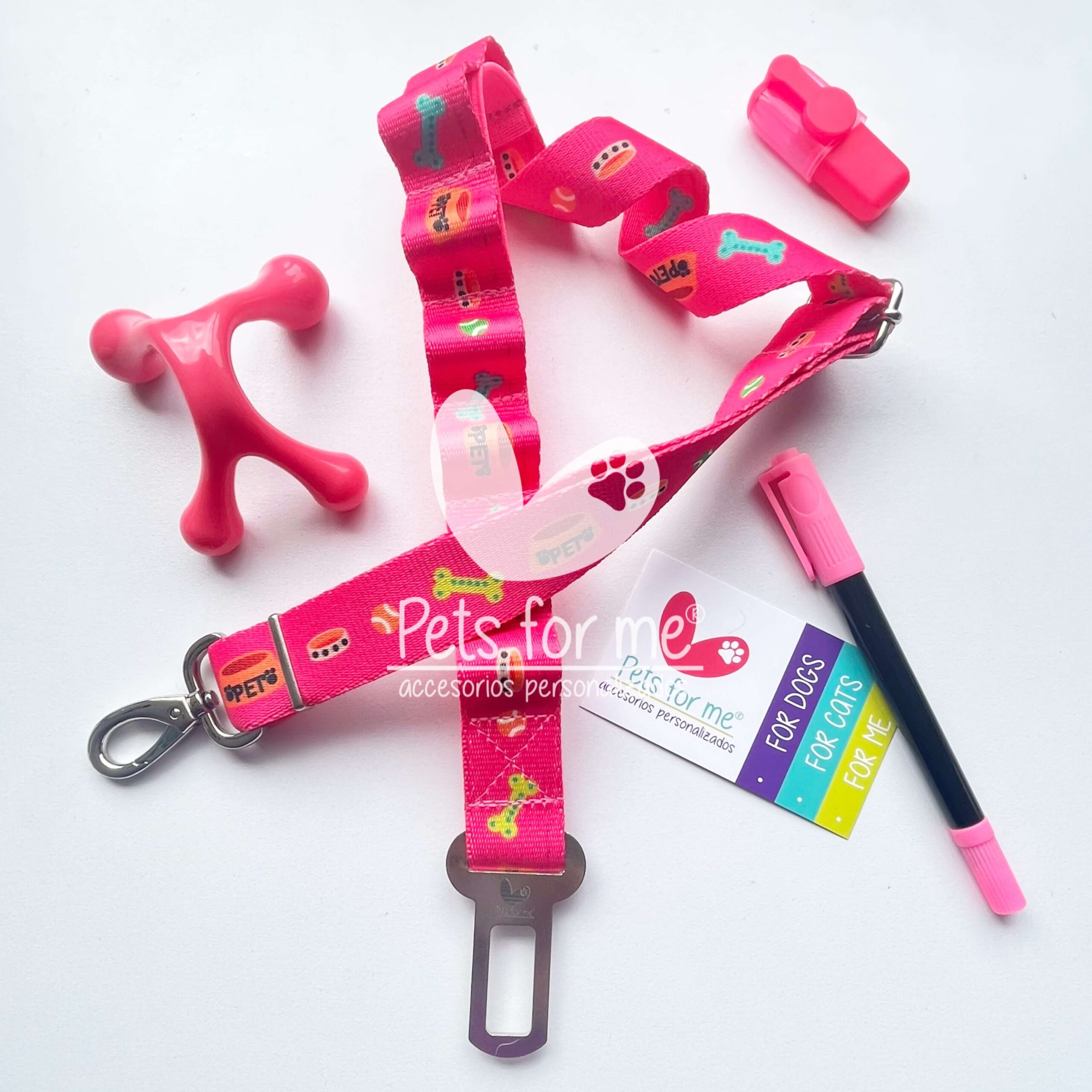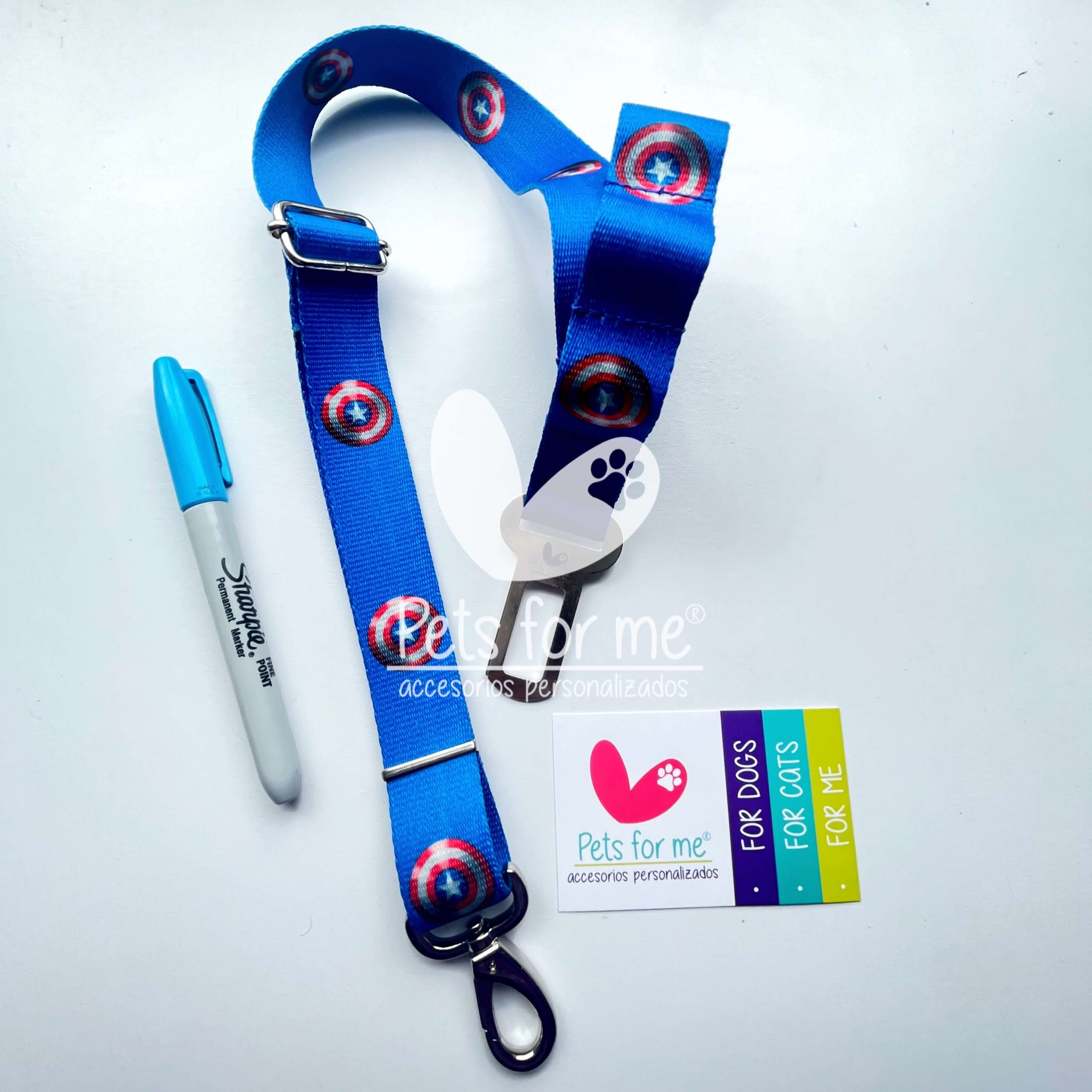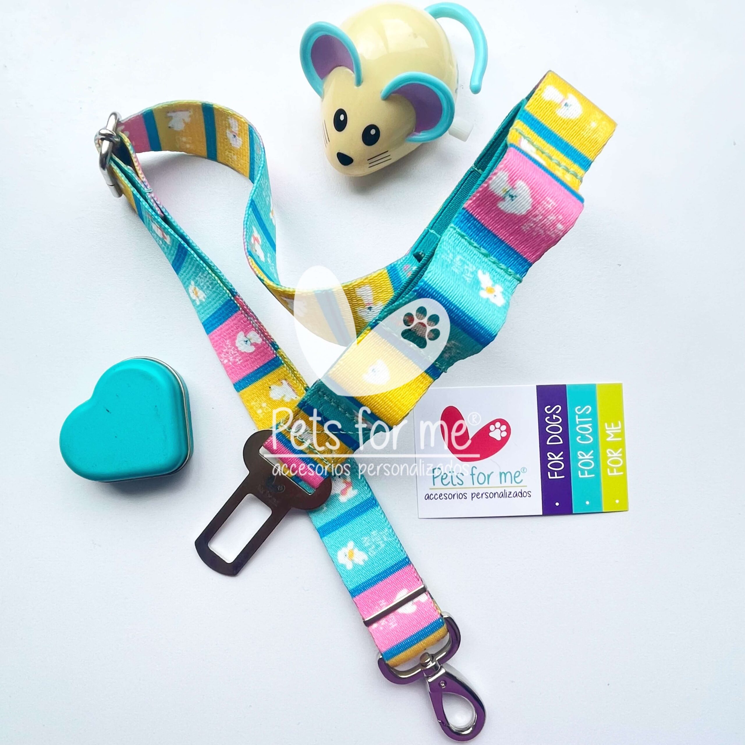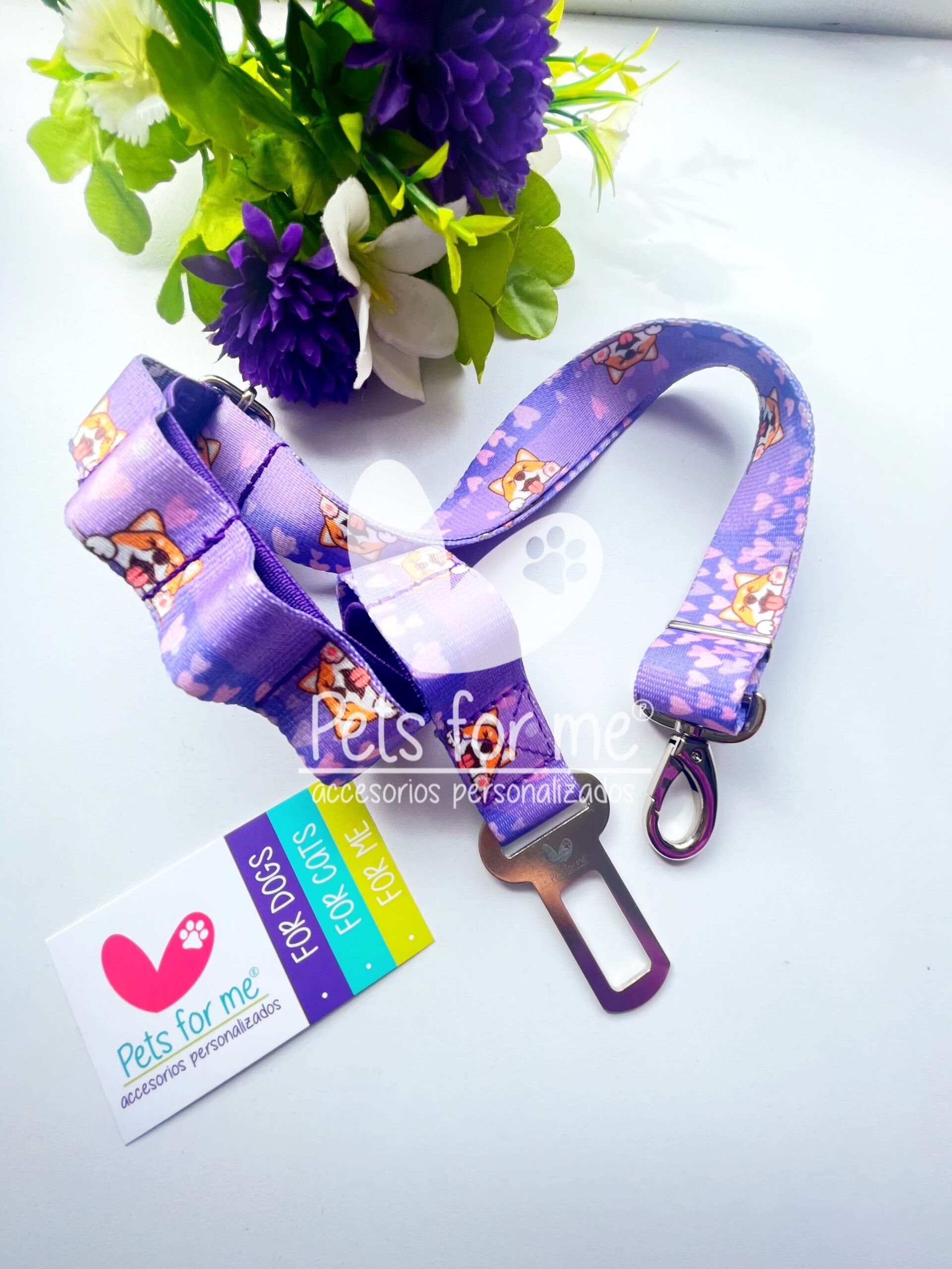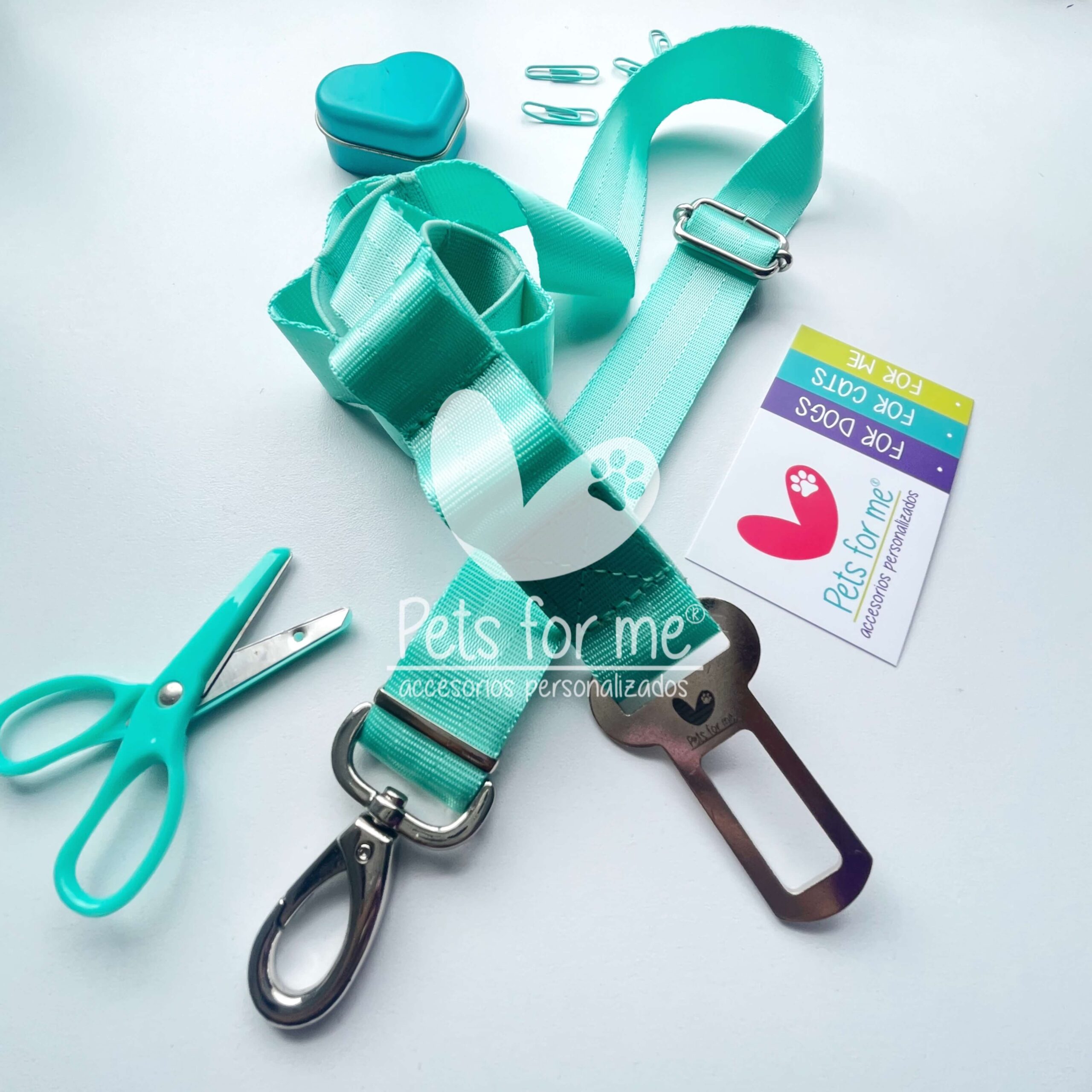 Lleva a tu mascota de forma segura en tu carro, asegúralo con este cinturón de seguridad que debes colocar a su collar, pechera o arnés.